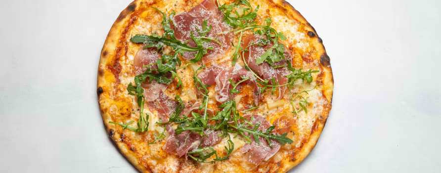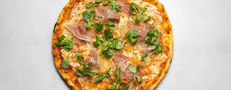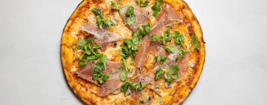 Tomatsås, mozzarella, prosciutto & champinjoner