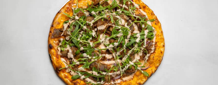 Tomatsås, mozzarella, kebabkött, rödlök & mild kebabsås