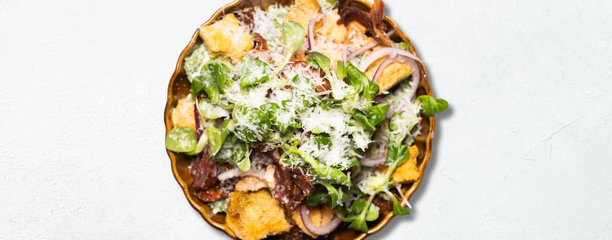 Romansallat, Kyckling, Bacon, Soltorkad Tomat, Grana Padano, Krutonger & Caesardressing