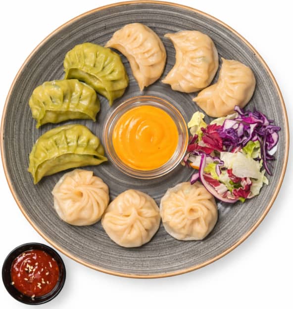 Soft, savoury pockets of flavour — 3 each of our handmade dumplings. Fillings are Chicken, Cottage Cheese and a Vegan blend of fresh vegetables.