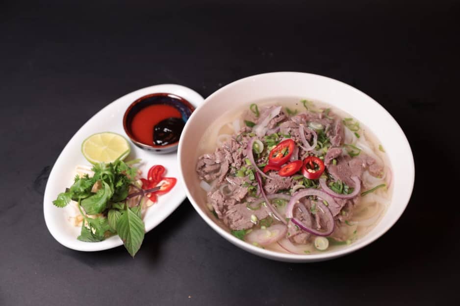 Vietnamesisk nudelsoppa med långkokt oxbuljong, risnudlar och tunt skivad oxfilé. Serveras med koriander, gräslök och rödlök. Om ni har allergiska så kan säga till oss.